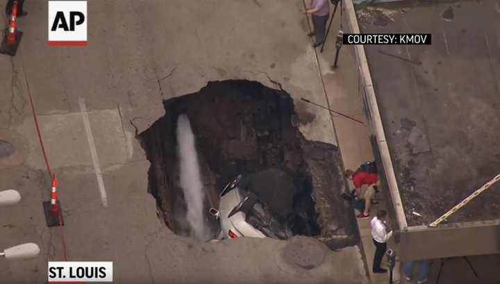 Дорога "проглотила" машину в Сент-Луисе. Видео