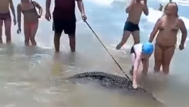 Сотрудники прокуратуры и полиции Краснодарского края изучают видео, которое было размещено в Сети. На нем запечатлено, как неизвестный мужчина купает крокодила на поводке в Черном море. На кадрах видно, что совсем рядом находятся отдыхающие с детьми.