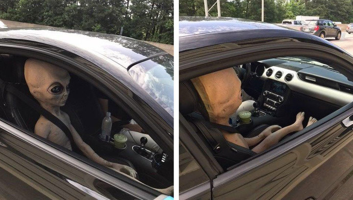 Стражи порядка из американского города Альфаретта, штат Джорджия, задержали автомобилиста, который вез на соседнем сидении пришельца. Мужчина не смог объяснить, зачем он посадил инопланетянина рядом с собой. Полицейские опубликовали фото странного пассажира в своем "Твиттере".