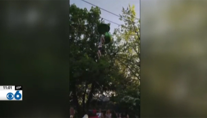 В Нью-Йорке девочка-подросток сорвалась с аттракциона, несмотря на то, что изо всех сил старалась зацепиться за сиденье. Ее спасли посетители парка - под аттракционом собрались люди, чтобы поймать подростка.