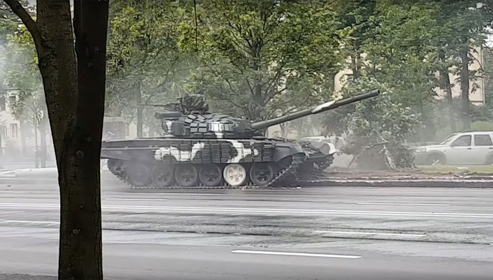 В Минске во время репетиции парада ко Дню Независимости танк Т-72 снес фонарный столб. В результате инцидента никто не пострадал.
