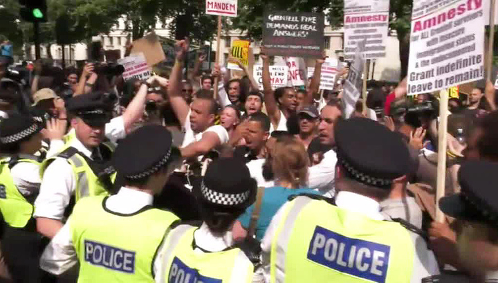 В Лондоне произошли столкновения с полицией. Тысячи людей вышли на акцию "День Гнева", требуя расследования причин пожара в высотке "Грэнфилд Тауэр" и предоставления жилья пострадавшим.