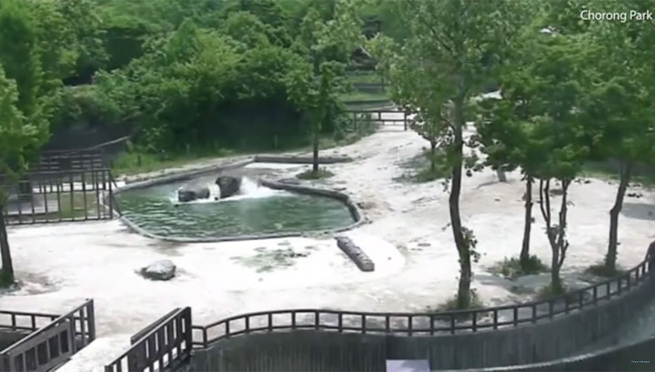 В Интернет попала запись с камер наблюдения одного из зоопарков в Южной Корее, на которой оказалось запечатлено спасение парой взрослых слонов своего детеныша, упавшего в водоем.