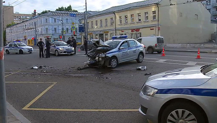 Крупная авария произошла утром 18 июня в районе Новослободской улицы в Москве. Сотрудники ГИБДД преследовали "Мерседес", который грубо нарушал правила дорожного движения. На регулируемом перекрестке автомобиль вылетел на "встречку", водитель не справился с управлением и ударился о бордюрный камень.
