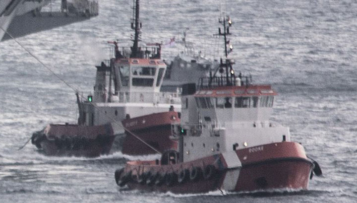 Два буксира идут на помощь эсминцу США, столкнувшемуся с контейнеровозом
