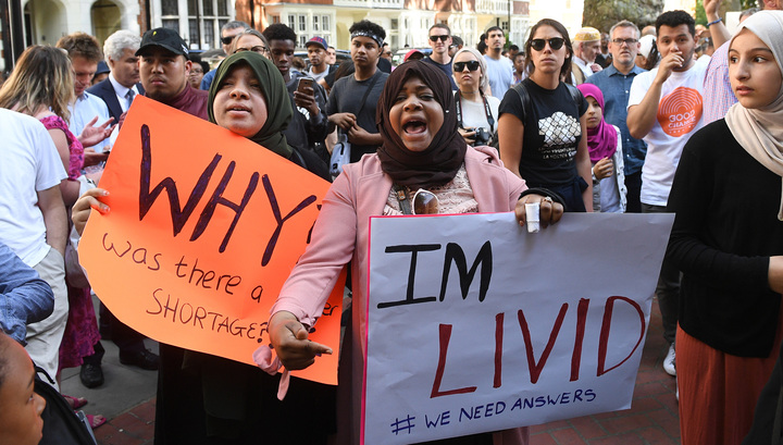 Демонстранты, протестующие в Лондоне против действий властей в связи с пожаром в жилой высотке, преодолели сопротивление полиции, проникли в здание совета лондонского административного округа Кенсингтон и Челси и требуют привлечь к ответственности виновных в происшествии.
