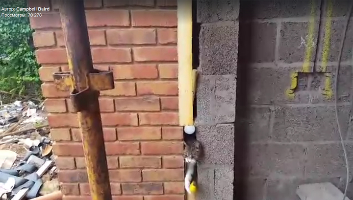 Житель Северной Ирландии спас любопытного кота, который провалился в щель между двумя стенами строящегося дома и никак не мог выбраться наружу.
