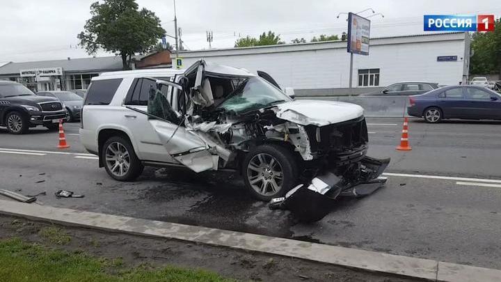 В Москве Cadillac протаранил грузовик