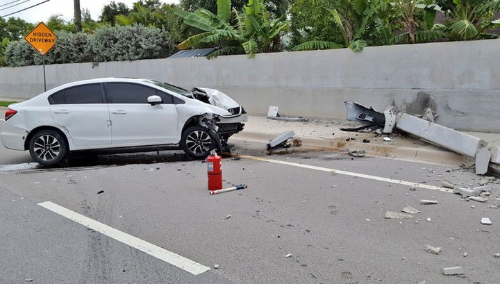 27-летняя жительница Флориды попала в аварию, разбив свой автомобиль Honda Civic о бетонный столб. Американка заявила, что потеряла управление из-за паука, который внезапно приземлился ей на ногу. Автомобиль женщины восстановлению не подлежит, а сама она отделалась легкими травмами.