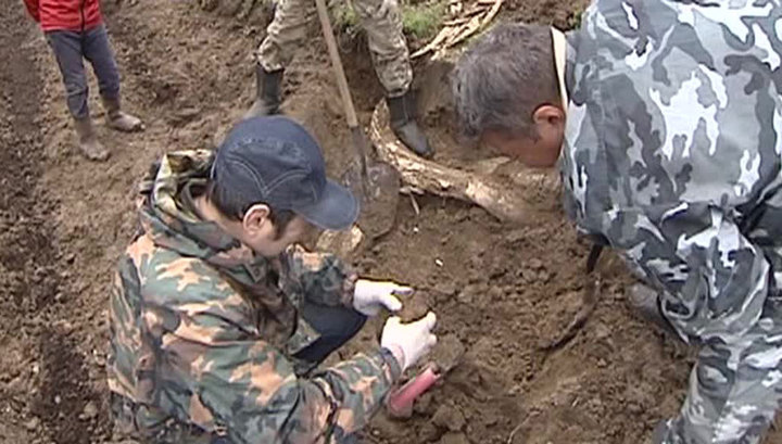 В Якутии учёные поднимают на поверхность останки мамонта, которые случайно обнаружил на своем огороде местный житель. Бивни достигают в длину почти три метра. Специалисты называют этот случай большой удачей: в регионе очень редко удается поднять из земли целый скелет древнего животного.