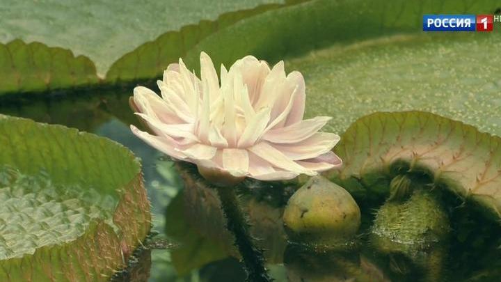 В "Аптекарском огороде" впервые расцвела самая большая в мире кувшинка - Виктория амазонская. В тропическом бассейне Ботанического сада МГУ крупный бутон раскрылся на глазах у посетителей менее, чем за полчаса. Такая кувшинка цветет всего двое суток, после чего уходит под воду.