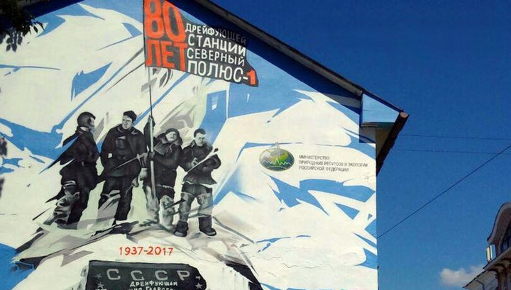 "Стену Папанина", которую около двух недель назад открыли ко Дню полярника на московской Сретенке, в минувшие выходные неизвестные испачкали красной краской.