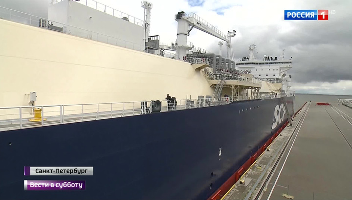 Президент Путин принял участие в церемонии имянаречения арктического танкера-газовоза "Кристоф де Маржери" - в память о бывшем руководителе энергетического концерна Total, трагически погибшем в 2014 году в авиакатастрофе в московском аэропорту Внуково.