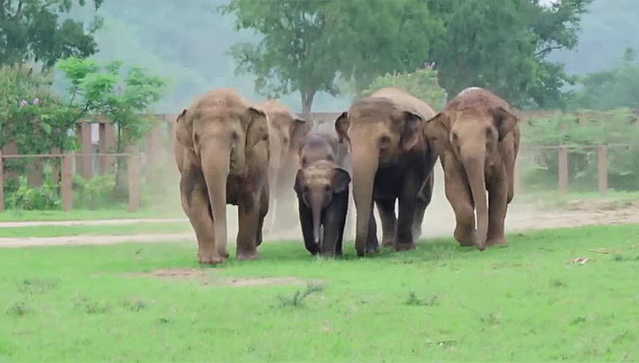 В Сеть попали трогательные кадры, на которых запечатлено, как стадо слонов в тайском заповеднике Elephant Nature Park бежит знакомиться с двухгодовалым слоненком, которого привезли в заказник после того, как его мать умерла. Взрослые животные явно рады пополнению в семье.