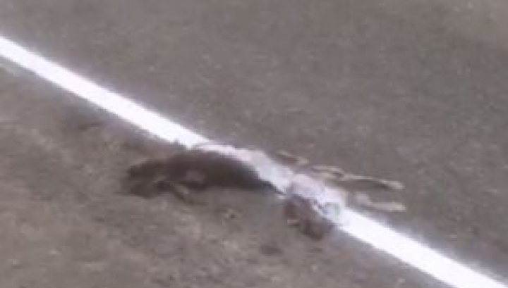 Алтайские рабочие нанесли дорожную разметку на сбитого кота. Видео