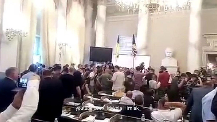 На Украине, которая почти в ЕС, радикалы снова попытались взять штурмом административное здание. Во Львове они пришли на заседание областного совета, чтобы поговорить о законе, который гарантирует амнистию участникам боевых действий в Донбассе.