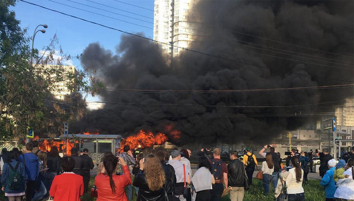 Возле метро "Юго-Западная" в Москве сгорел пассажирский автобус