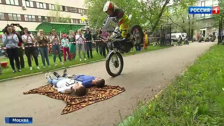 В столичном НИИ детской онкологии и гематологии московские байкеры провели сеанс "Мототерапии". Дети смогли прокатиться на самых разных видах двухколесной техники, увидеть трюковое мотошоу, посетить контактный зоопарк и просто пообщаться.