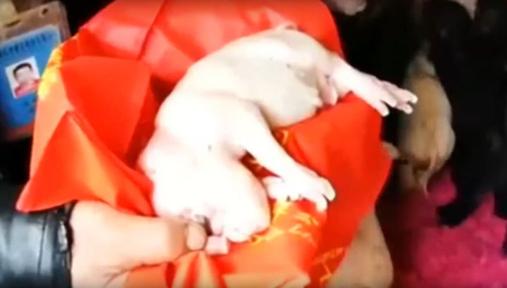 В Китае родился лысый поросенок со "слоновьим" хоботом. Видео