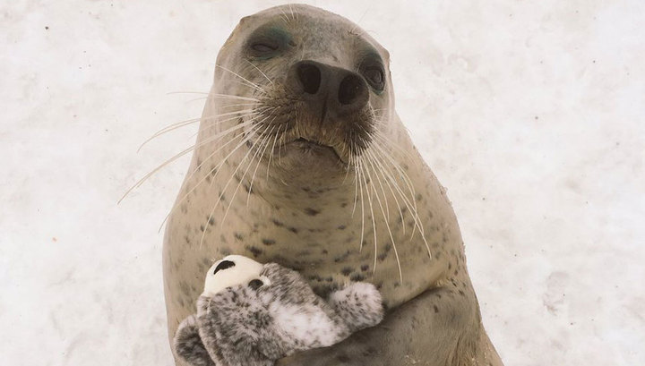 "Обнимашки" японского тюленя со своей игрушечной копией покорили Интернет