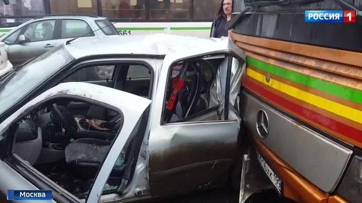 На юге Москвы автобус протаранил шесть легковушек