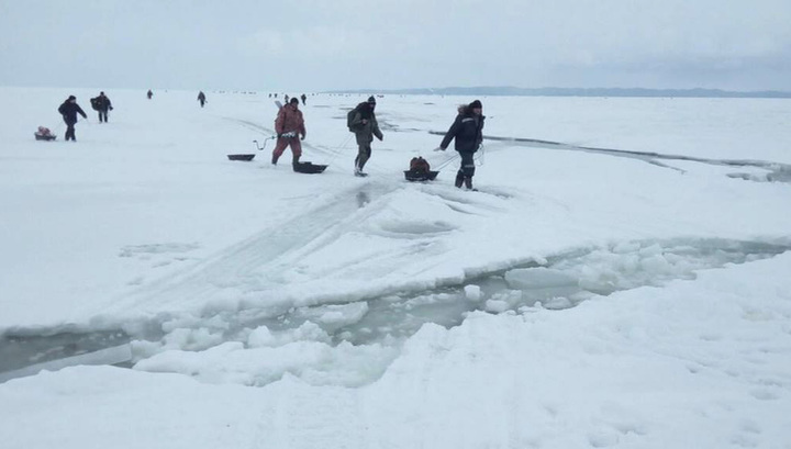 Спасатели эвакуировали всех рыбаков с дрейфующей льдины на Сахалине